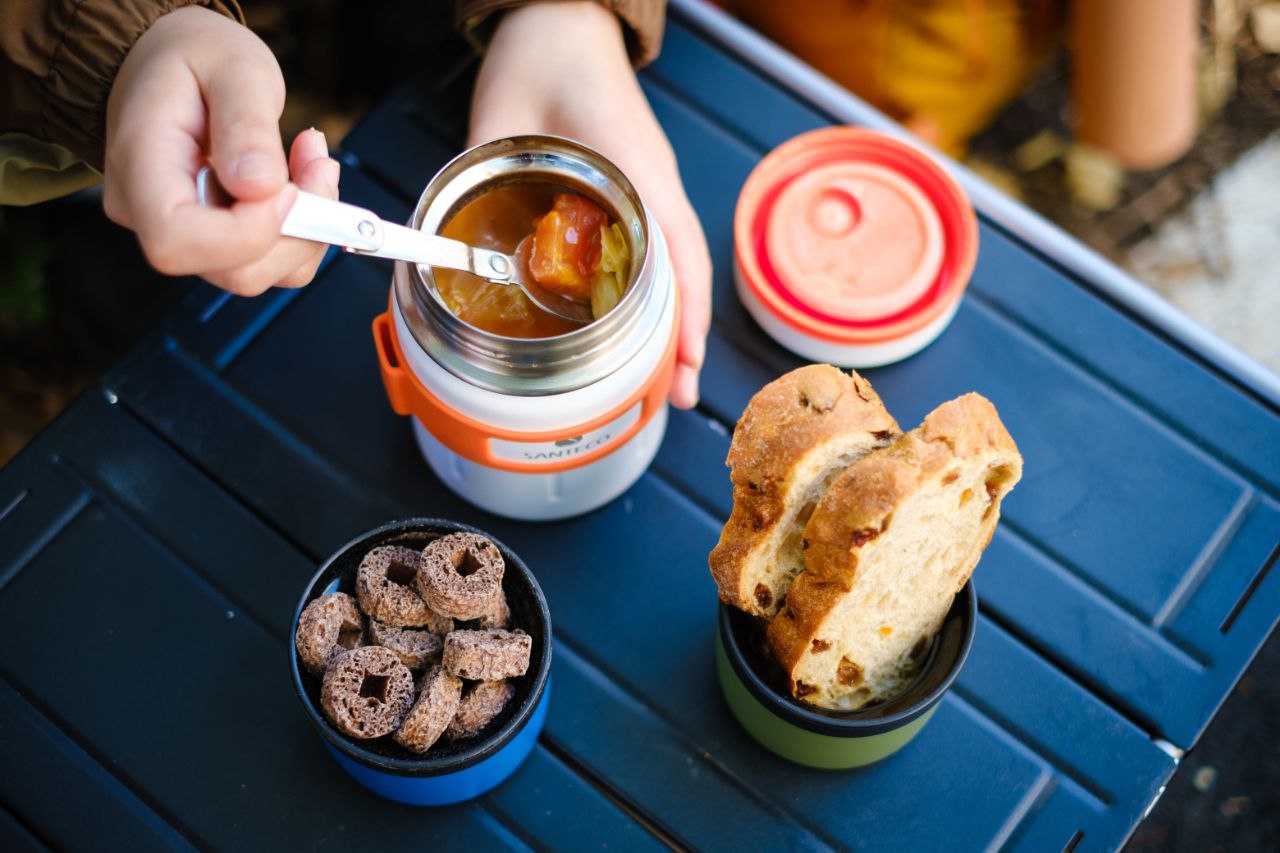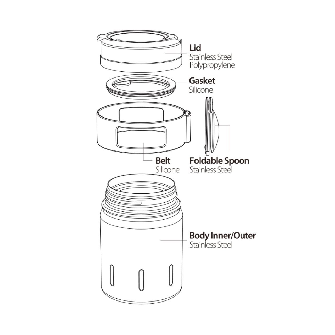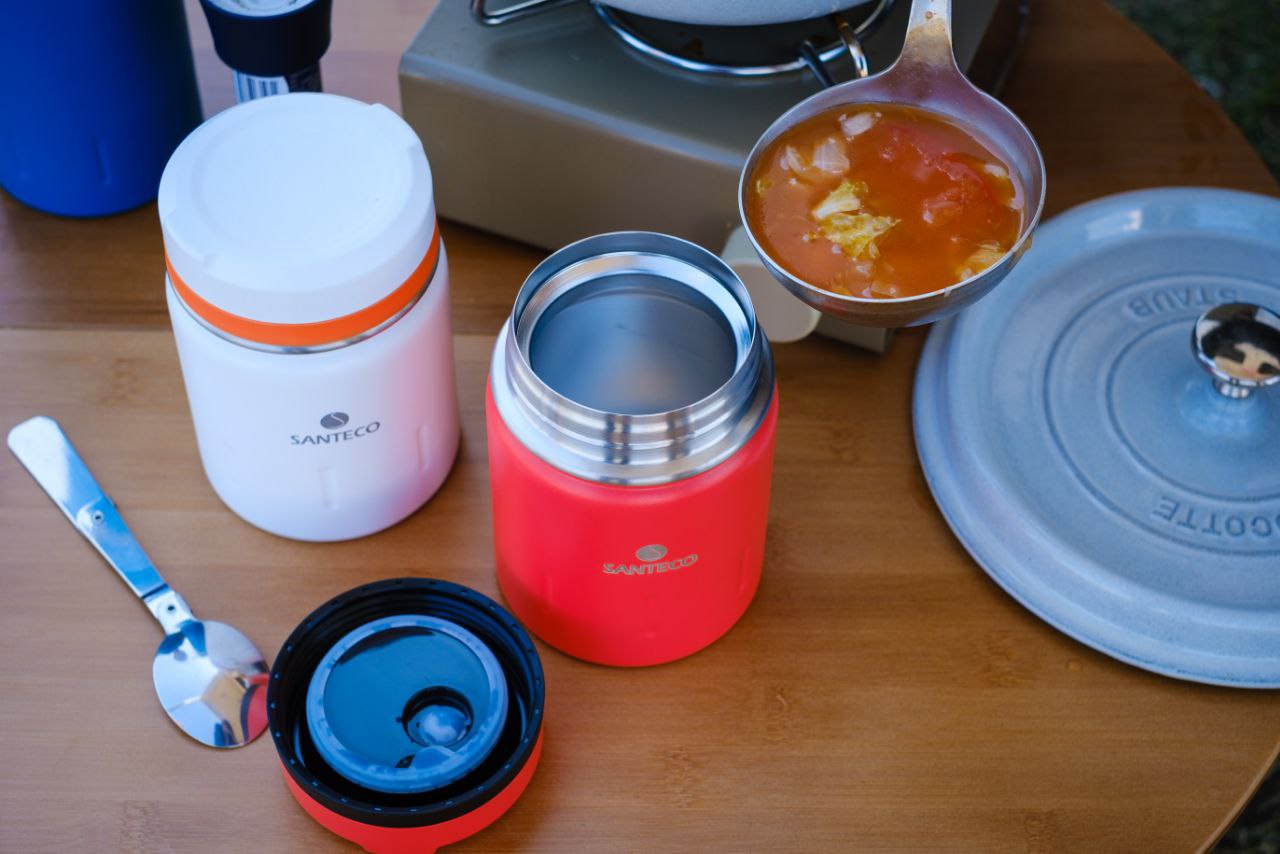 بدنه این ظرف غذای سانتکو از استیل ضد زنگ ساخته شده است که علاوه بر مقاومت بالا در برابر ضربه و فشار، از لحاظ بهداشتی نیز بسیار مناسب است. استیل ضد زنگ مانع از جذب بو و رنگ غذا می‌شود و به راحتی تمیز می‌شود. دسته‌ های این ظرف کوهنوردی از پلی پروپیلن ساخته شده‌اند که به دلیل خاصیت عایقی و مقاومت در برابر حرارت، حمل و نقل آن را آسان و ایمن می‌کند. درب ظرف از جنس تریتان ساخته شده است که شفافیت بالا، مقاومت در برابر ضربه و نفوذناپذیری در برابر هوا و رطوبت از ویژگی‌های بارز آن است.