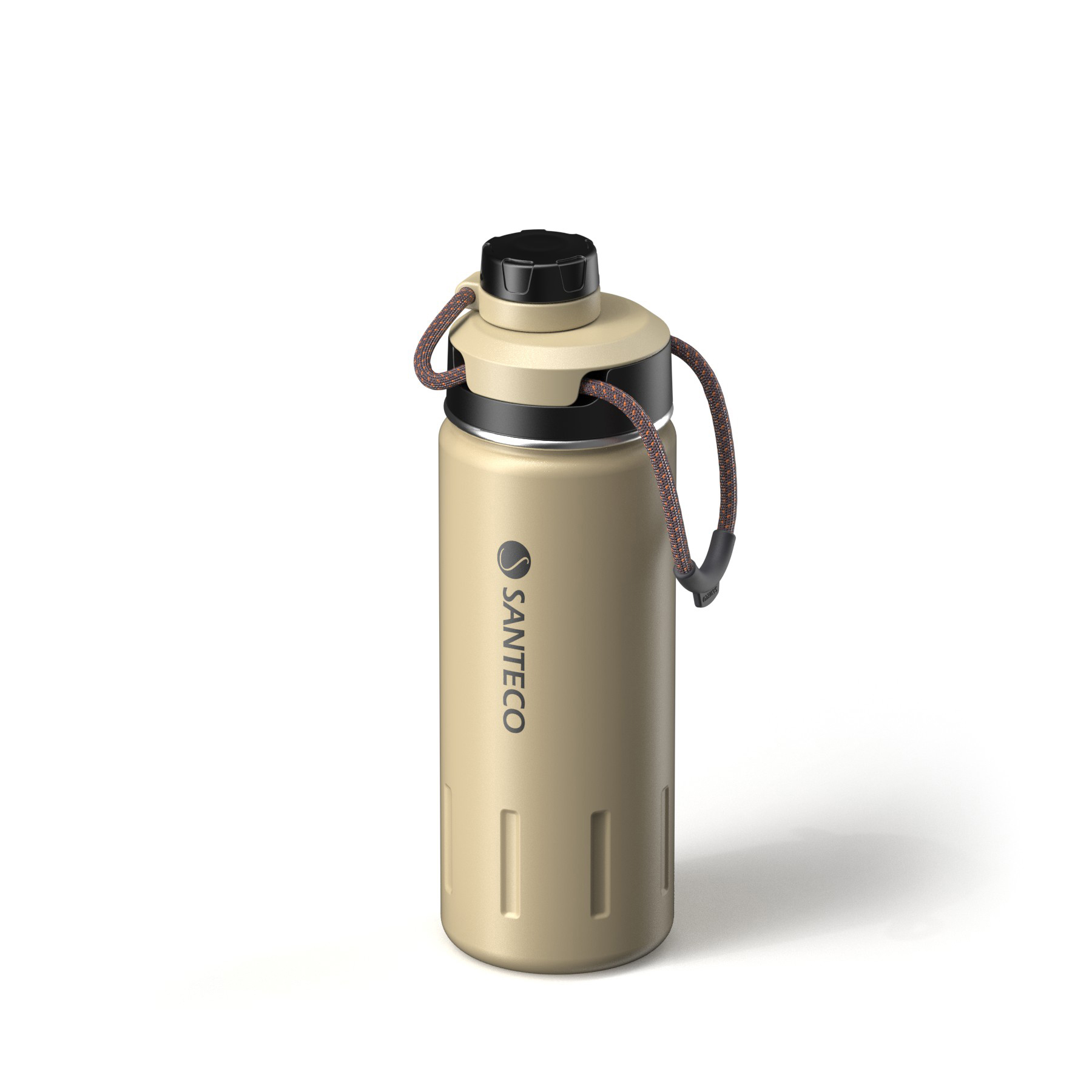 درب این فلاسک سانتکو به گونهای طراحی شده که با محکم بسته شدن، از نشت مایعات جلوگیری میکند. علاوه بر این، بند نایلونی تعبیه شده بر روی درب، حمل فلاسک را آسانتر کرده و امکان اتصال آن به کیف یا کوله پشتی را فراهم میسازد.