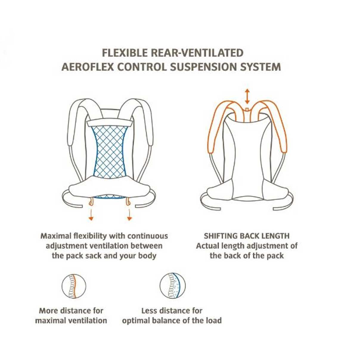 پشتی با سیستم ایمپ هایک EMP HIKE با تهویه شبکه ای؛ و با تکنولوژی آرگونومیک مومنت پنل Ergonomic movement panel که سازگار با پشت افراد؛ و همسان با سایز و اندازه هر فرد استفاده کننده می شود